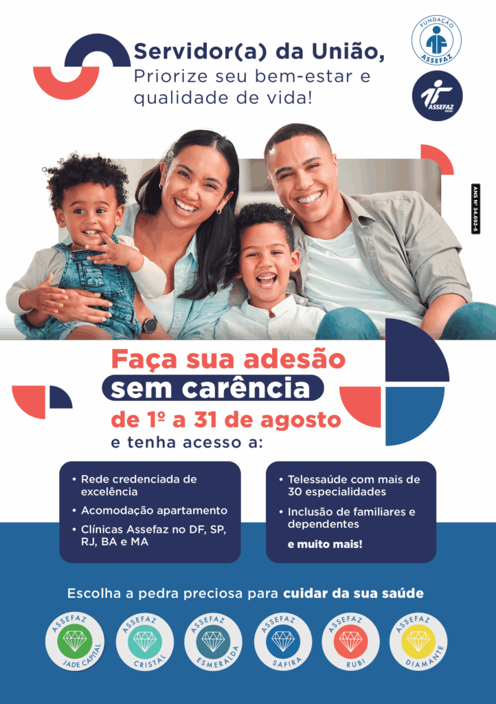 Para mais informações sobre os planos de saúde, entre em contato através do 0800 703 4545, do WhatsApp (61) 99241-4907 ou acesse o site oficial da Assefaz: www.assefaz.org.br .
